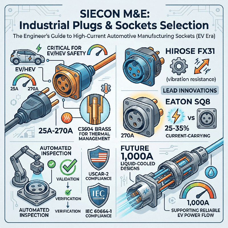 Compliance with industry standards is non-negotiable for automotive sockets. Engineers must select components meeting or exceeding USCAR-2 specifications. USCAR-2 governs vibration, temperature shock, and durability testing. Additionally, with the shift towards higher voltage architectures, creepage distances become critical. Clearance distances are also critical safety factors requiring attention. Connectors like the JAE Electronics MX81D series are designed for compliance. They comply with IEC 60664-1 safety standards rigorously. This ensures they withstand potential differences up to 320V AC/DC. They perform reliably even at high altitudes without arcing. Looking ahead, the industry prepares for the next leap. Megawatt-class charging systems for commercial vehicles are developing rapidly. Collaborations, such as Autel Energy and Phoenix Contact partnership, are integrating liquid-cooled CCS2 connectors. These are capable of handling 1,000 amps in boost mode. While this represents a high-power charging standard, the underlying principles remain. Thermal management, contact integrity, and system-level compatibility are key. These principles trickle down into every high-current socket design. They apply to every socket within the modern vehicle.