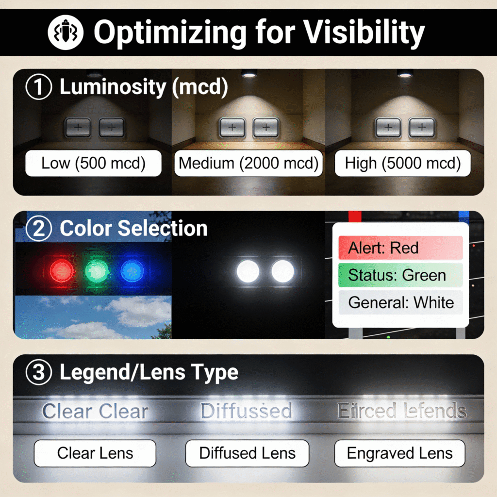 Visibility is non-negotiable for LED illuminated push buttons—operators must quickly identify button status and location, even in challenging conditions. Below are the critical factors to prioritize: