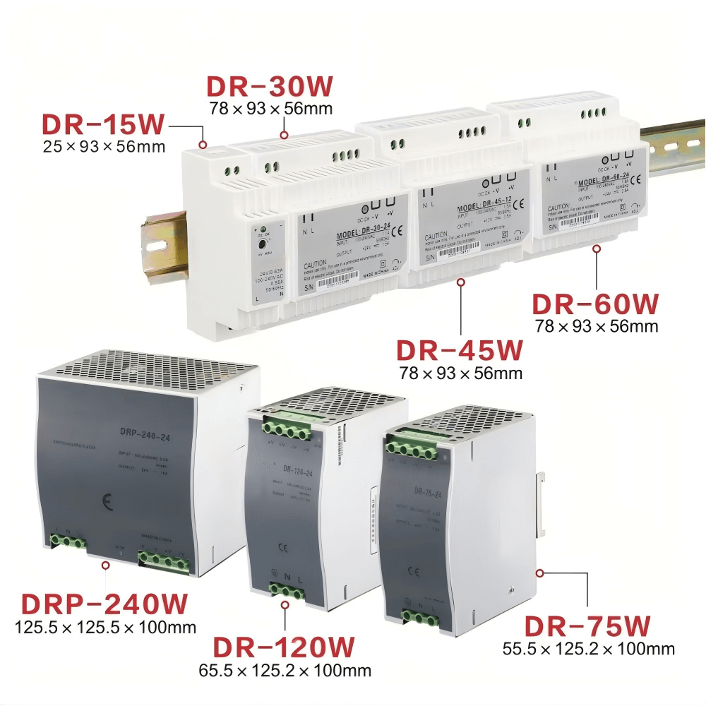 This series of industrial-grade switching power supplies is designed for seamless integration into automation systems, control panels, and electrical enclosures. Featuring a universal AC input range and stable DC outputs (5V, 12V, 24V, or 48V), it provides dependable power for PLCs, sensors, relays, industrial controllers, and other low-voltage devices. The compact, fanless design with DIN rail mounting ensures easy installation and optimal use of cabinet space.