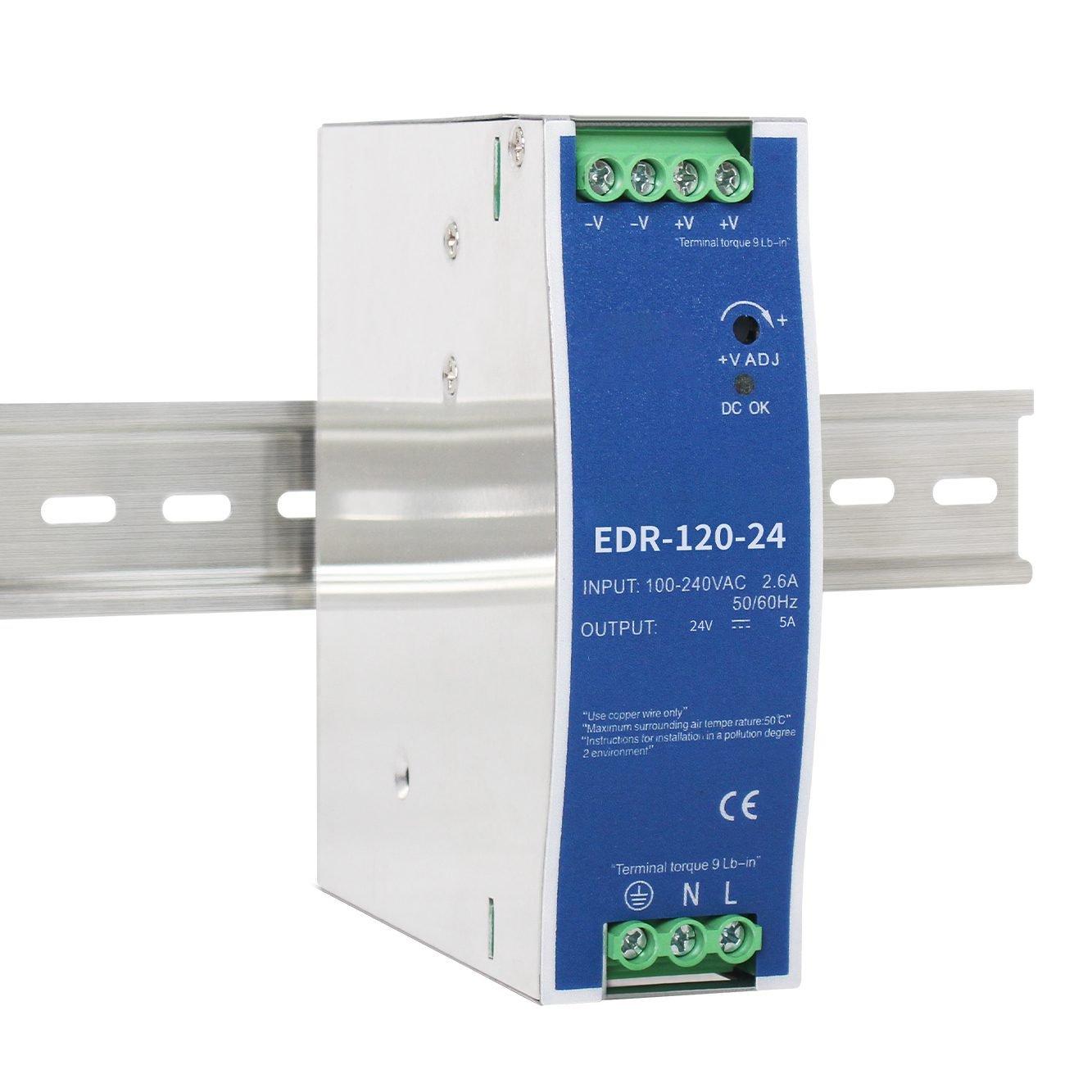 Compared to standard power supplies, the EDR-120W offers superior power density, packing 120W of reliable power in a compact DIN rail mountable design. Additionally, its industrial-grade components ensure extended service life and reduced maintenance requirements. For applications requiring different power specifications, explore our complete range of DIN Rail Power Supplies including the popular EDR-75W model for moderate power needs and our high-power 240W series for more demanding applications.