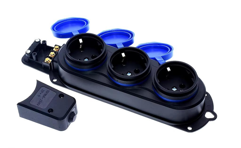 The IP44 rating guarantees protection against water splashes from all directions and solid objects larger than 1mm, making it perfect for exposed areas. The integrated blue flip-up cover automatically seals the outlets when not in use, providing an additional layer of defense against moisture and debris. Safety is paramount, ensured by the German Standard 2P+E grounding system, which offers a secure earth connection to prevent electrical hazards.