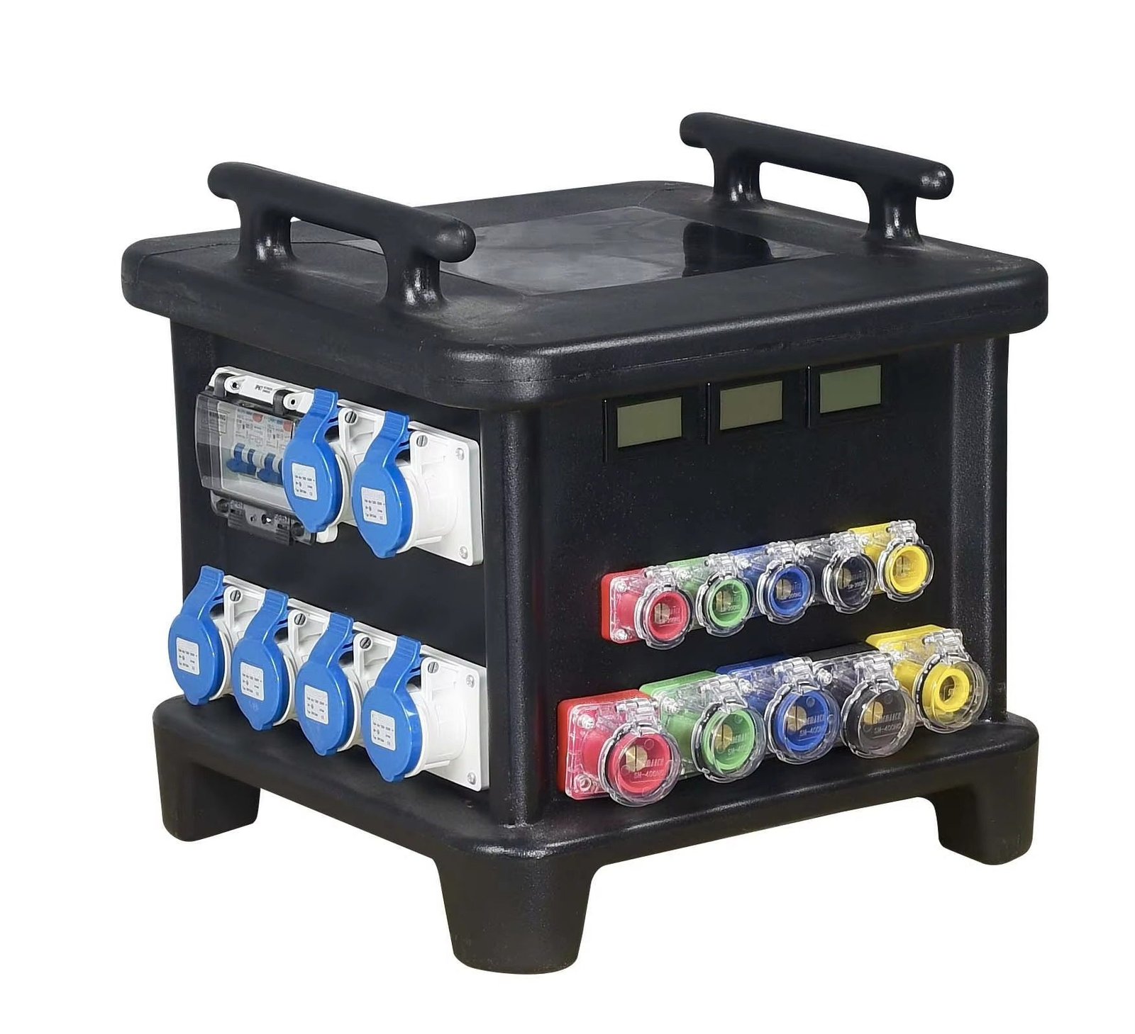 Our portable power distribution box delivers reliable, safe power distribution for demanding sites. Specifically, this durable plastic enclosure boasts IP67 and IP66 ratings, which protect against dust and water ingress. Moreover, its stackable design maximizes space efficiency on the job. Finally, it includes high-current industrial sockets for versatility in both temporary and permanent setups.